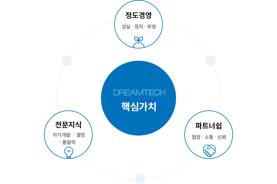 동반성장 하기 위해 3가지 핵심 가치를 실천합니다.